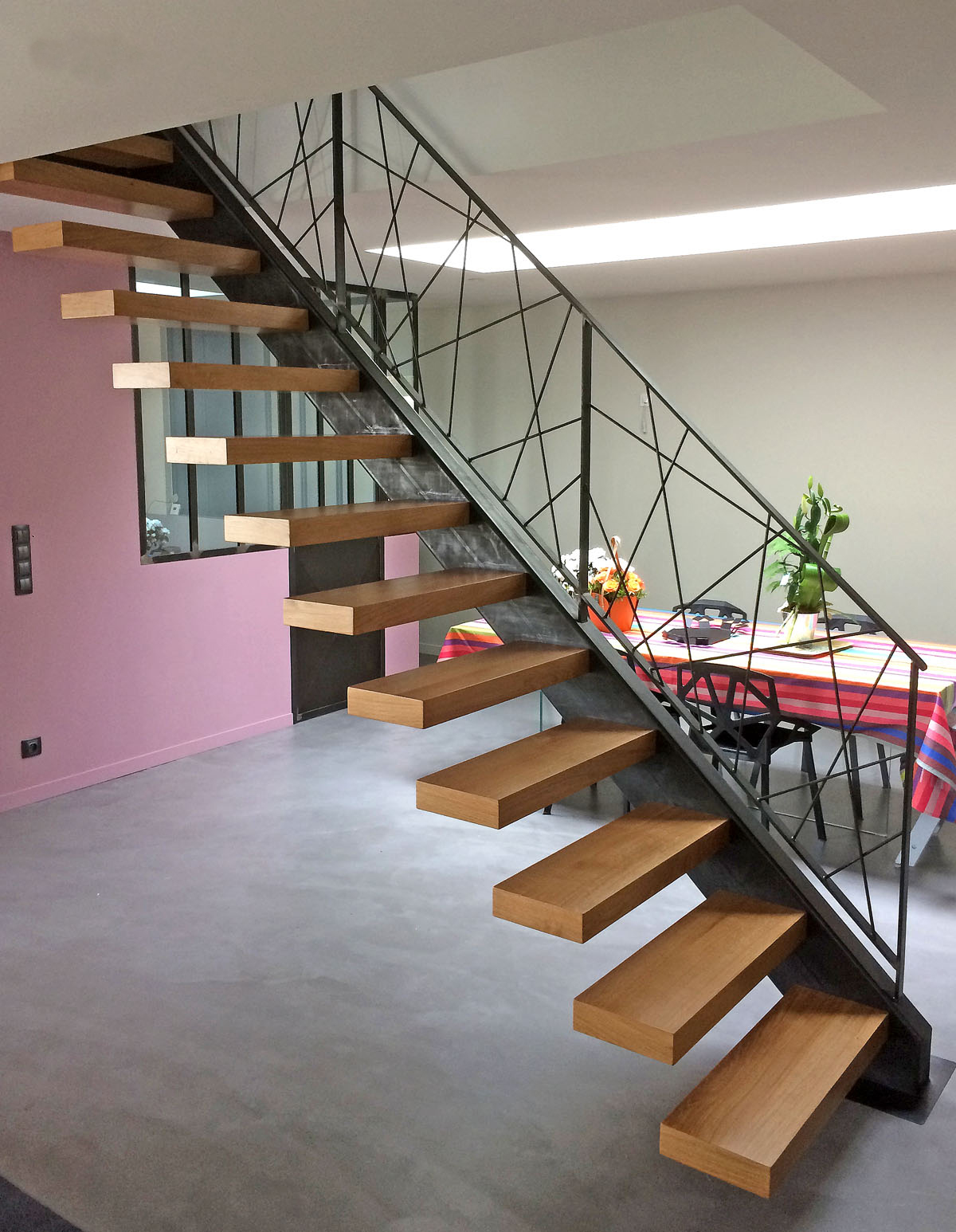 ESCALIER MÉTALLIQUE DROIT OU QUART TOURNANT AVEC LIMON (Passage à partir de 600mm)